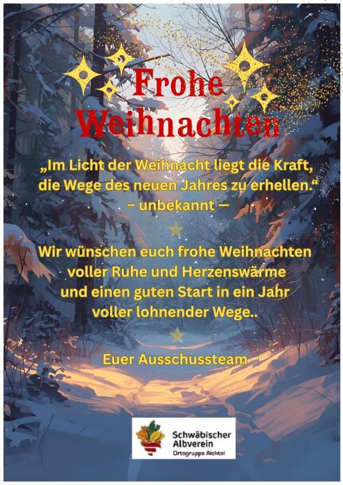 Wir wünschen euch ein Weihnachtsfest voller Ruhe, Licht und Herzenswärme – und einen guten Start in ein Jahr, das euch wieder auf lohnende Pfade führt.