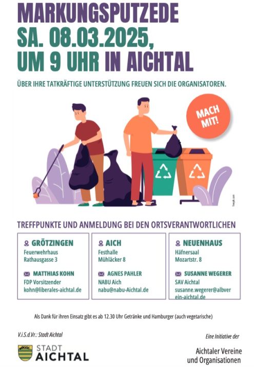 2. Stadtteilübergreifende Markungsputzede Sa., 08.03.2025, Uhrzeit: 00:00 iCalendar Mit dem Laden der Karte akzeptieren Sie die Datenschutzerklärung von Google.Mehr erfahren Karte laden Google Maps immer entsperren zur Übersicht
