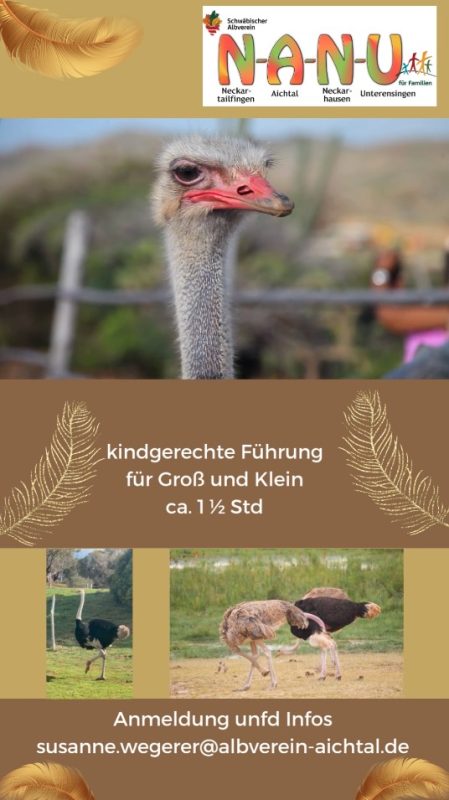 Kommt mit auf eine spannende Entdeckungstour auf dem Lindenhof in Böhmenkirch und erlebt die größten Vögel der Welt aus nächster Nähe!