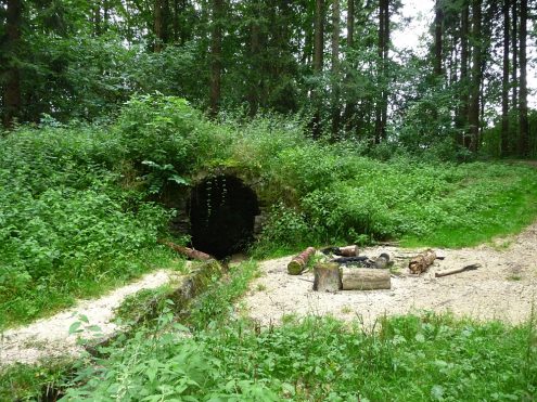 Von hier führt nun ein schmaler, steiler Pfad im Zickzack den Berg hinab auf die halbe Höhe des Albtraufs. Hier müssen wir ein grünes, dreieckiges Schild “Naturdenkmal” suchen, das auf die Mondmilchhöhle hinweist. Den Namen hat die Höhle von weichen, kalkhaltigen Ablagerungen an den Höhlenwänden, die man als Mondmilch bezeichnet.