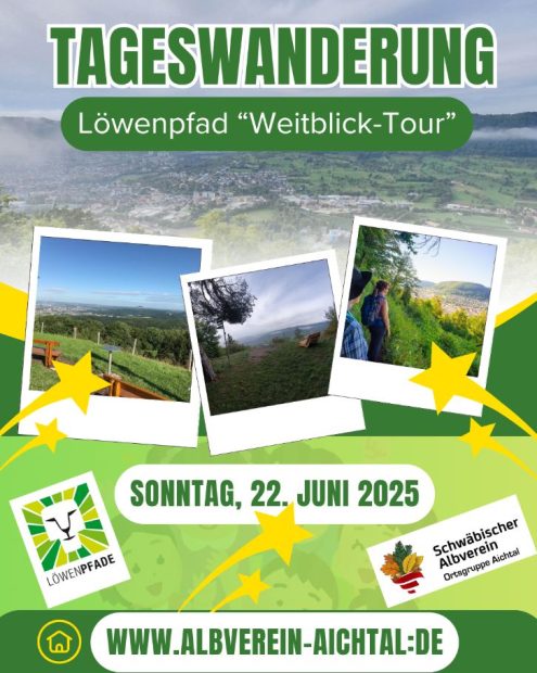 Der Löwenpfad „Weitblick-Tour“ zwischen Gingen und Geislingen an der Steige ist ein vom Deutschen Wanderverband zertifizierter Rundwanderweg in der Kategorie „traumtour“. Die Wanderung ist eine rund 12,1 Kilometer lange Tour und führt uns zunächst zum Eingang des Längentals, dem kleinsten der fünf Täler in Geislingen an der Steige. An idyllisch gelegenen Kleingartenanlagen gehen wir vorbei bis auf die Albhochfläche. Mit Kuchalb, Maierhalde und Hohenstein erwarten uns dort wunderbare Aussichtspunkte auf einer Höhe von etwa 700 Metern, die uns den traumhaften Blick auf den Albtrauf sowie auf das Voralbgebiet bis nach Stuttgart eröffnen.
